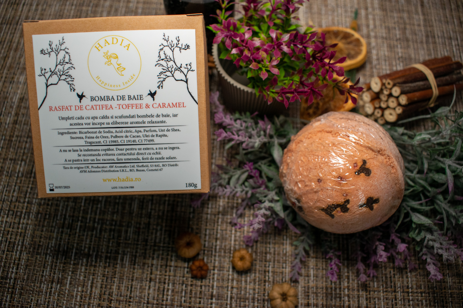 Instructiuni De Folosire: nstructiuni De Folosire: Umple cada cu apa. Arunca bomba in apa, iar aceasta va începe imediat să facă bule și să elibereze aroma. Intră în apă și bucură-te de aroma și efectul efervescent timp de 15-20 de minute. Atenție: Evită contactul cu ochii și folosește cu precauție în caz de piele sensibilă