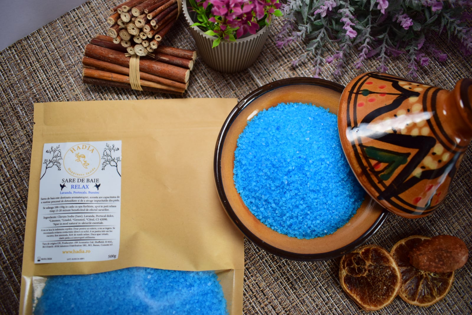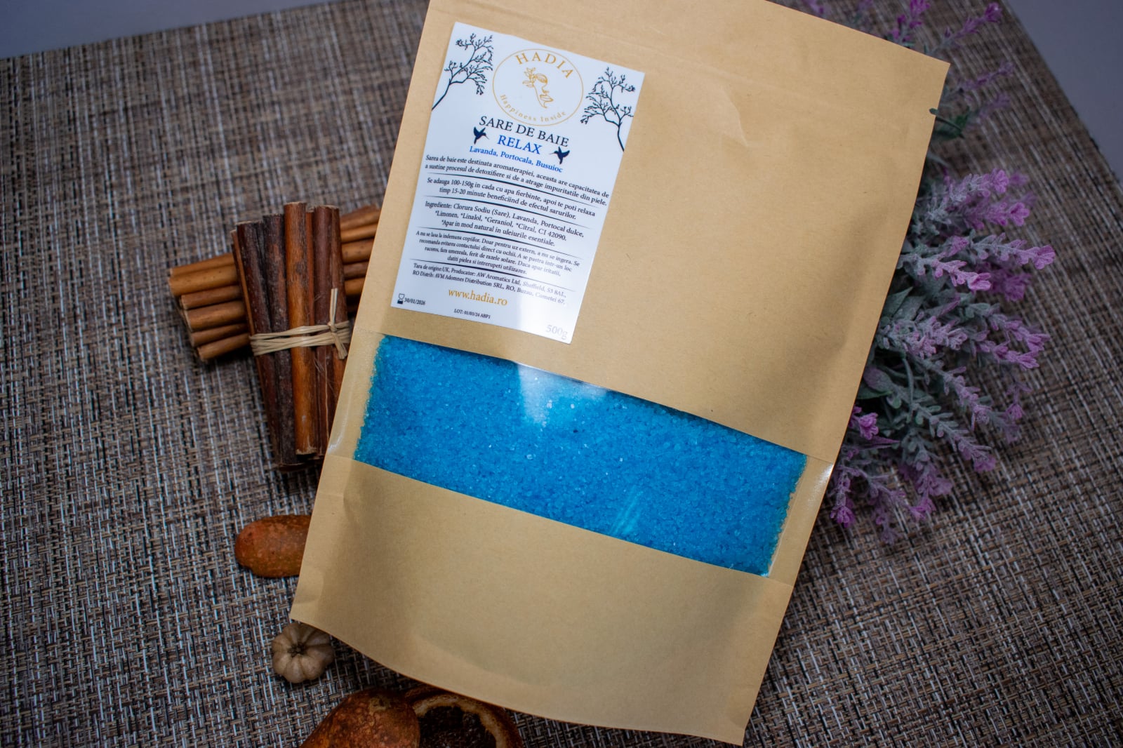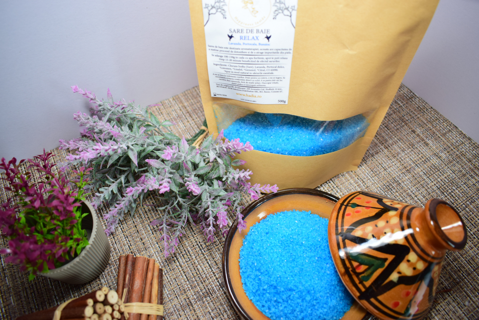 Ingrediente Relax: Ingrediente: Sare, Lavanda, Portocal *Limonen, *Linalol, CI 42090 *Apar in mod natural in uleiurile esentiale.